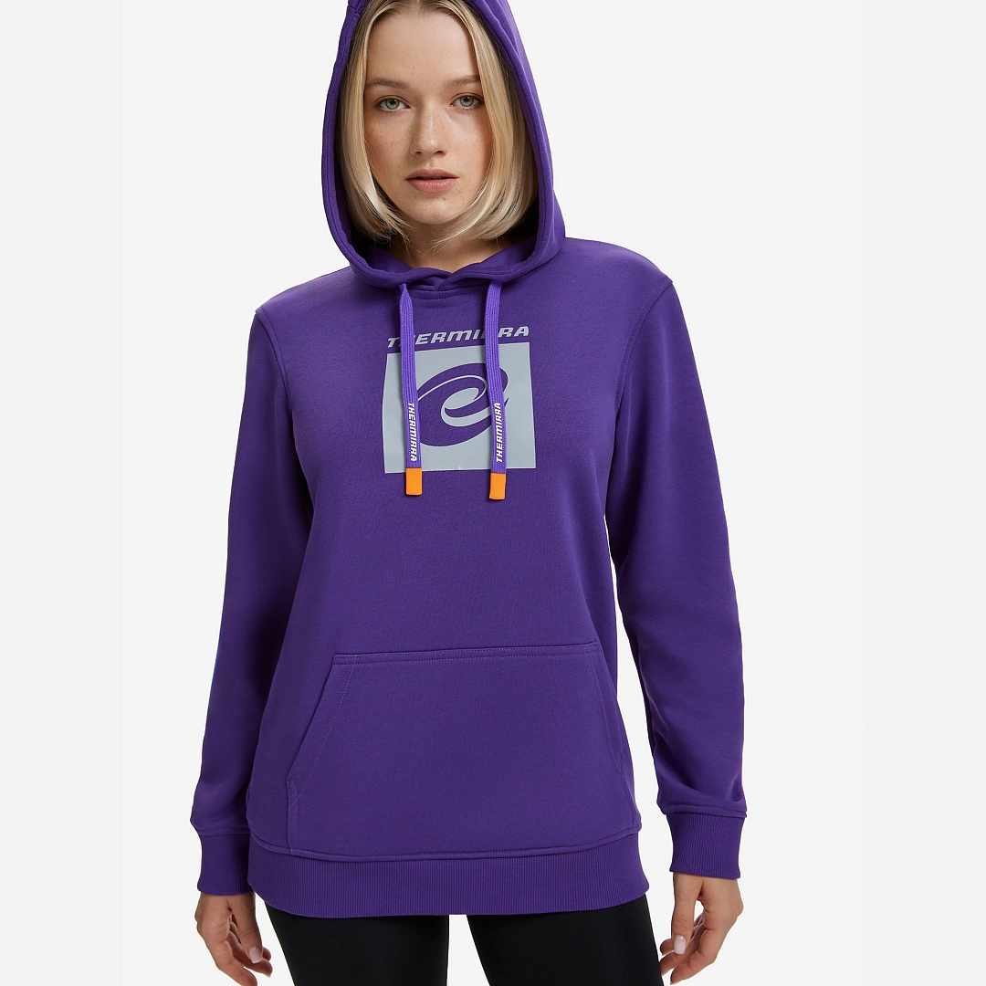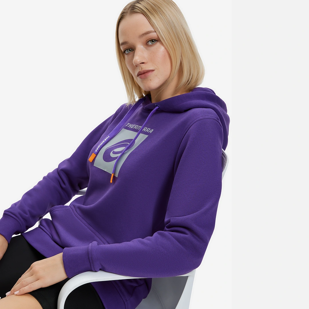 Классическая женская толстовка с логотипом Термирра фиолетового цвета из материала футер 3-нитка.